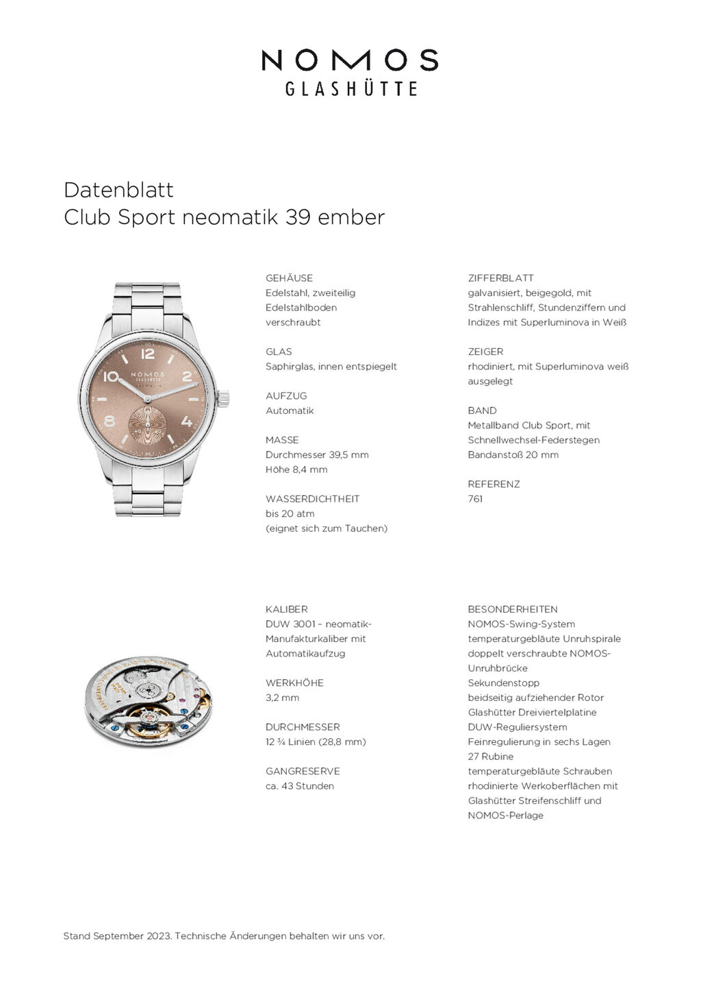 Datenblatt Club Sport neomatik 39 ember (Ref. 761)