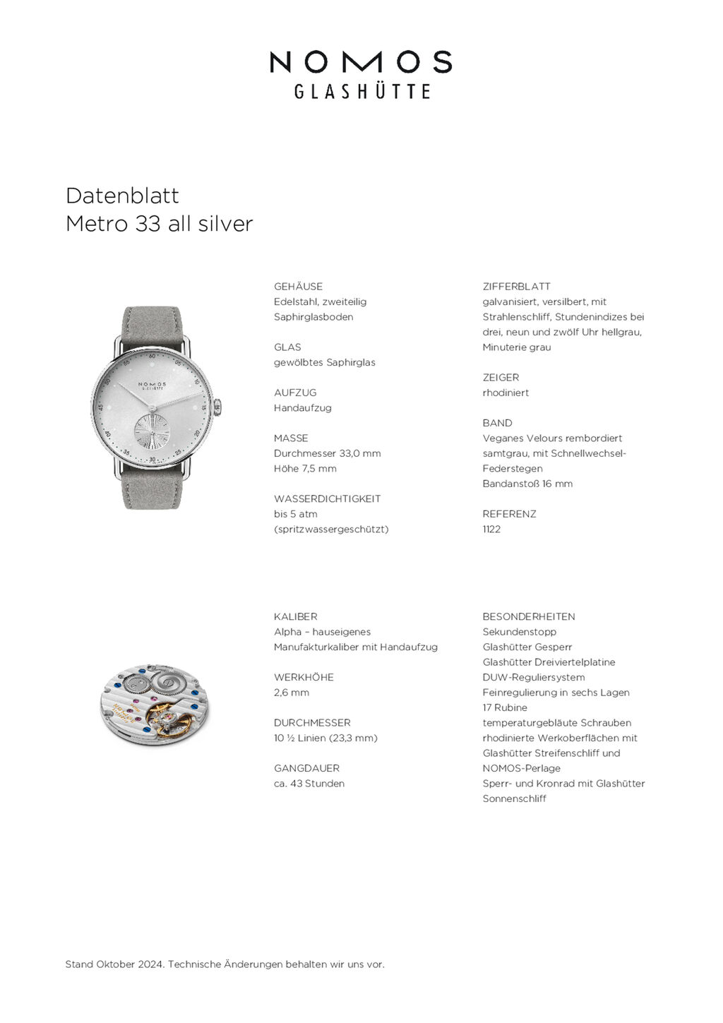 Datenblatt Metro 33 all silver (Ref. 1122)
