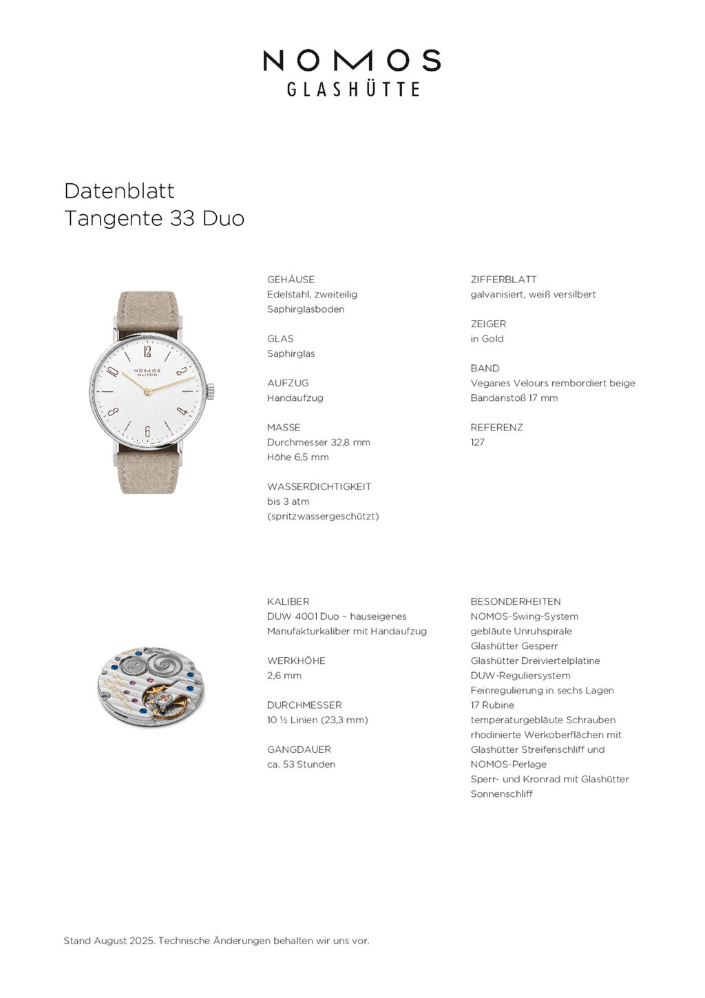 Datenblatt Tangente 33 Duo (Ref. 127)