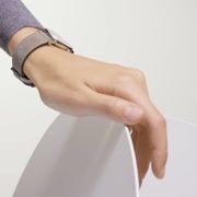 This light-colored velour leather strap discreetly lets the watch attract attention: It flatters particularly delicate wrists and lets smaller watches appear even more refined.