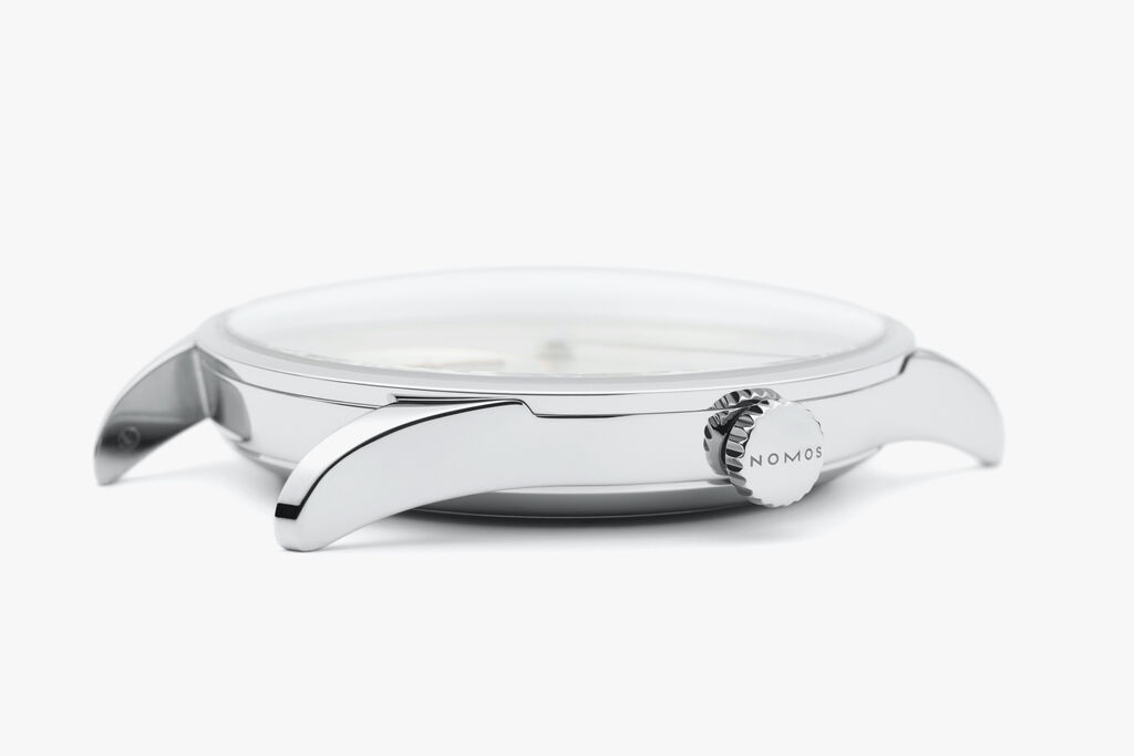 Firstly, of course, because they have become characteristic of NOMOS Glashütte. Instant recognizability is one of the strengths of our iconic watch collection. But the original idea was to present the lugs as not only as a functional element of a watch, but as a distinct design element. The lugs of NOMOS watches all differ from one another. They continue the overall shape of the cases, and the slender profile of NOMOS watches calls for a continuation in the lugs. However, because the lugs are positioned below the bezel and fit snugly against the wrist, the overall effect is always elegant and comfortable to wear.
