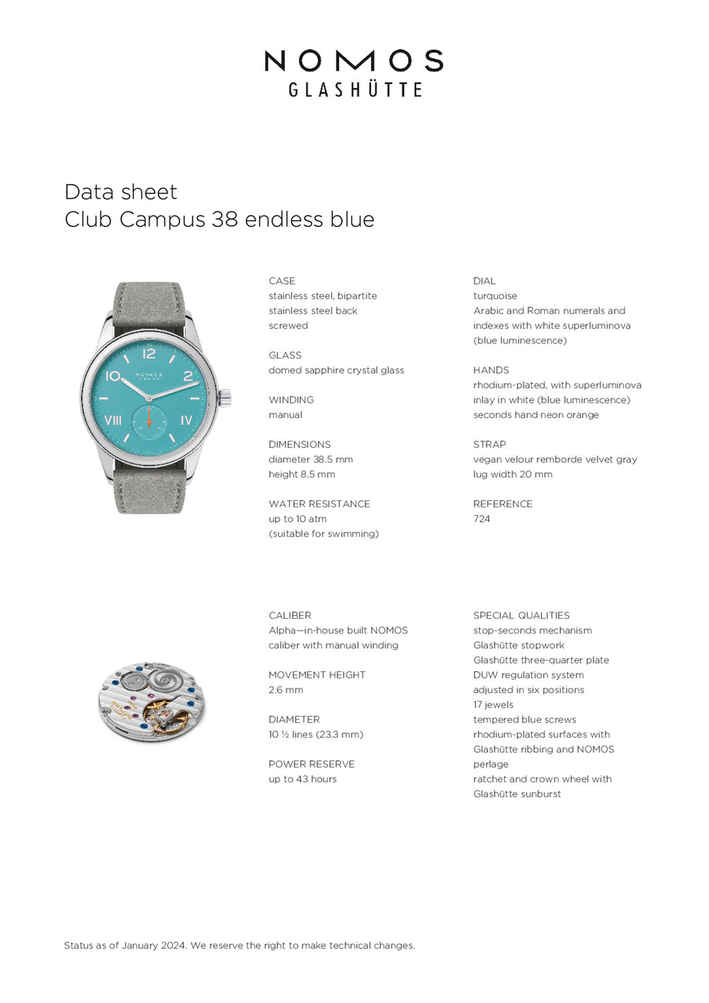 Fact sheet Club Campus 38 endless blue (ref. 724)