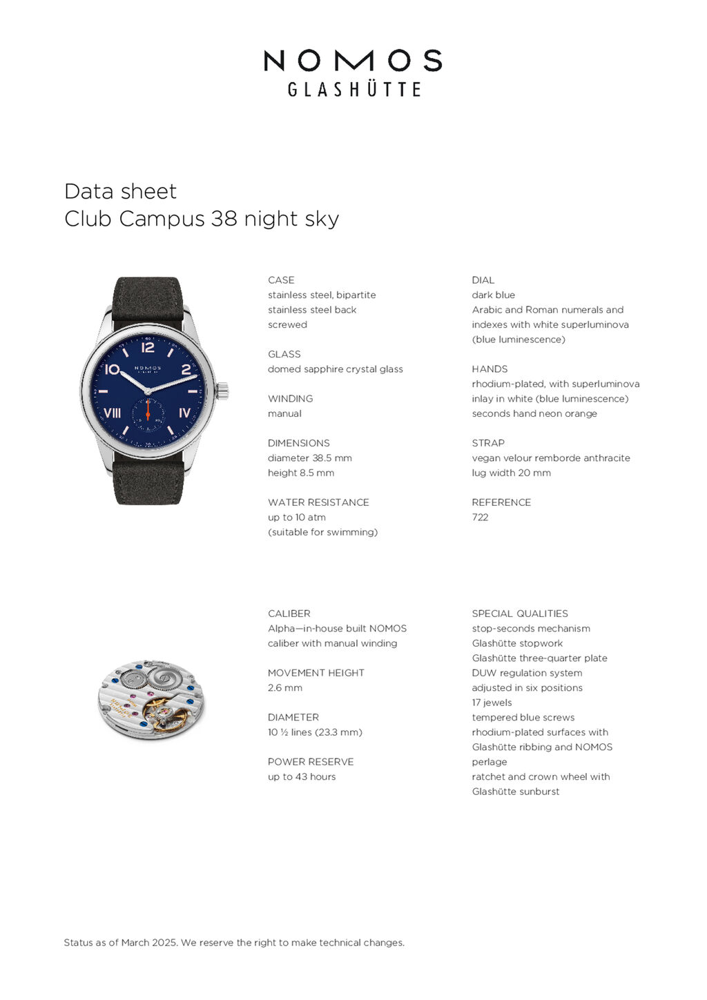 Fact sheet Club Campus 38 night sky (ref. 722)