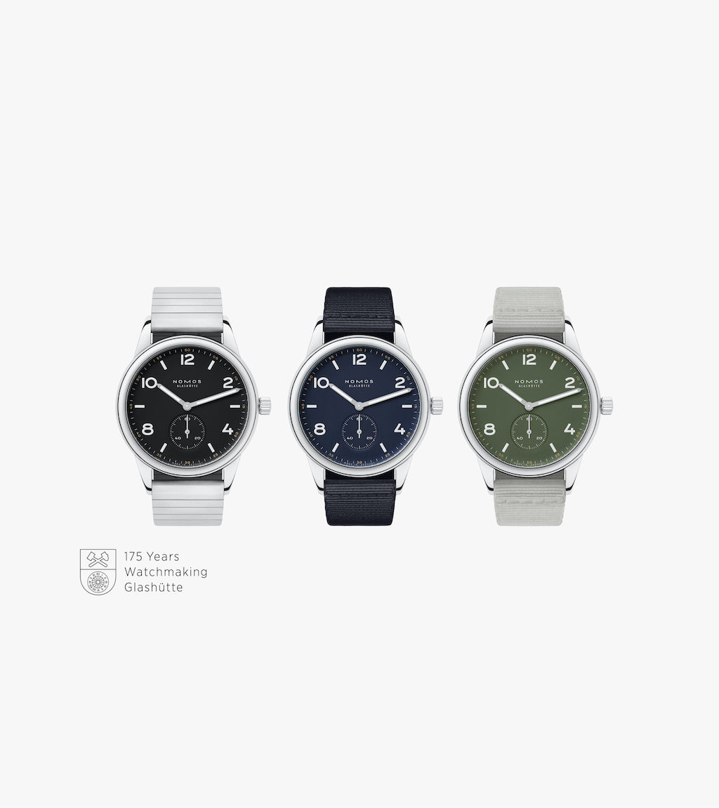 175 years of fine watchmaking in Glashütte, now ready for the next generation: NOMOS special edition Club automatic in the colors onyx, navy, and olive combines Glashütte handcraft with high tech. And it’s attractively priced. Each model is limited to 175 pieces and adjusted according to chronometer standards.