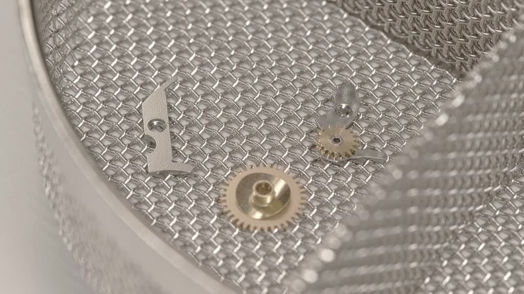 Laundry goes in the washing machine. And small watchmaking parts? There are washing machines for them as well, even if the machine looks a bit different. The small parts are placed in it and the program can start. From the washing solution with optional ultrasonic activation, the journey continues through several rinsing solutions that remove the very last droplet of water and last grain of dust. The washing basket is constantly rotating, just like a washing machine at home. The final stage is, of course, the spin cycle. And then there's the dryer with warm air, which dries the items immediately—very practical! Hanging them up to dry is not an option, as clothespins are simply too big.