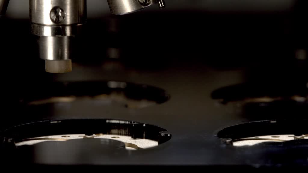 Small rubies enable low-friction bearing of the wheels, or more precisely, the pivots. Being pressed in at the correct height guarantees that each wheel has the necessary clearance to rotate freely. Hand pressing takes a long time, and the more precise it is, the longer it takes. Precision in this step saves our watchmakers a lot of adjustment work later on. Our machine can set the ruby to the correct position, and more importantly, in relation to the correct reference plane on the plate. In addition to speed, this is the great advantage for precision. Here, the automated process serves quality and efficiency, at every step, for every single jewel. The monitoring of the press-in positions and the press-in forces takes place completely automatically during production. Modern technology, put to good use.