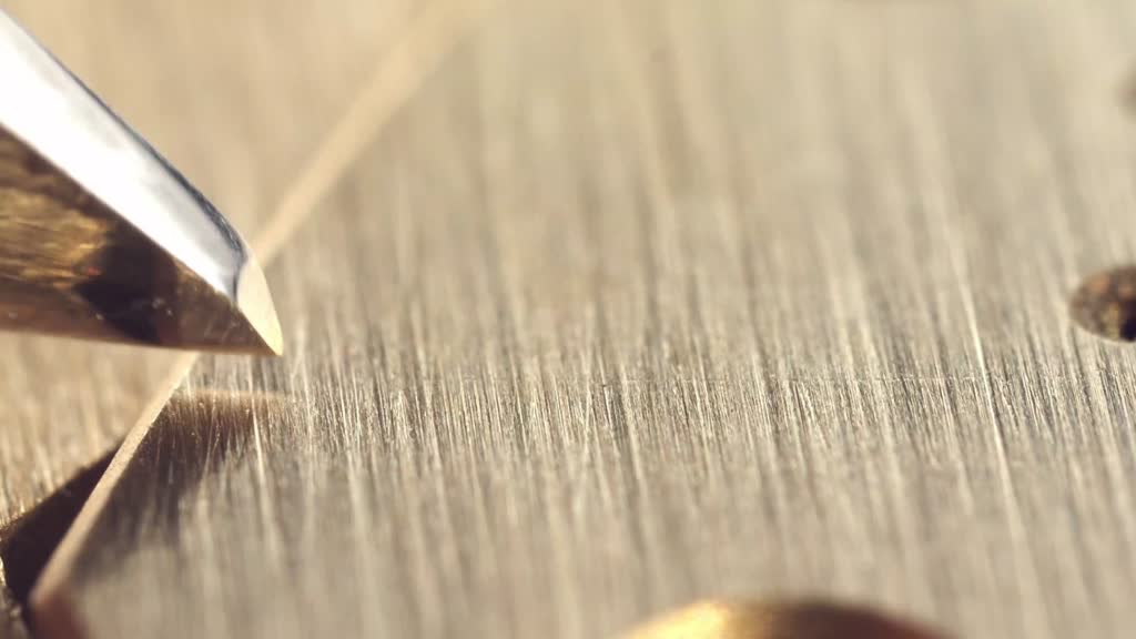 In the close-up of the film sequences, you not only see something happening in our facilities, but you experience it happening. The close-up view illustrates the need for expert care in every single step of the process. In the intimacy of magnification, surfaces become recognizable as landscapes with a topography that is immediately altered by each intervention. You see how a plate begins to vibrate very gently under pressure. How a gulf can open up under an engraving pen without further ado. But there is also pure joy in how the tiny cogs in the world of the movement circle as radiant suns. And a most beautiful reliability in the inevitable flow of an oil droplet spread on the corrector wheel during pre-assembly. The microscopic perspective is surprising and essential; it is artful, authentic, and very satisfying.