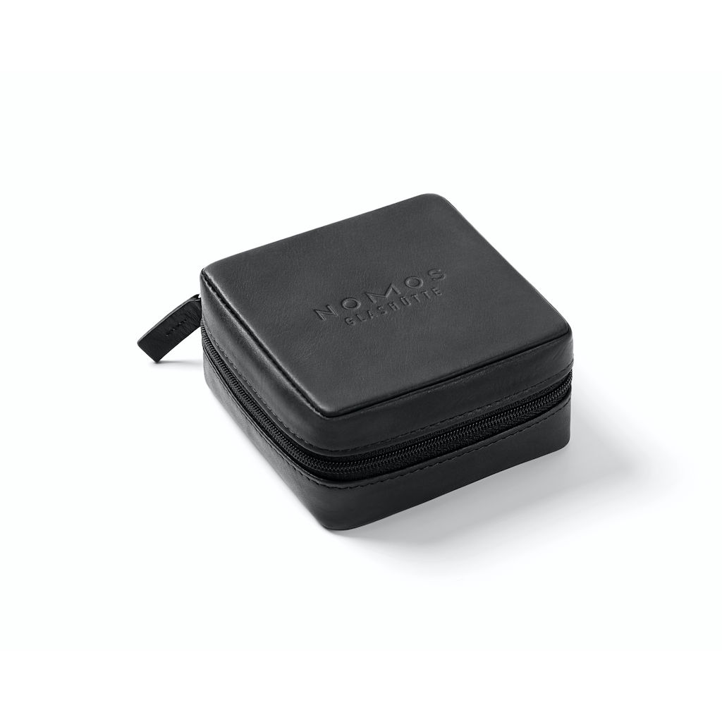 ¡De viaje con NOMOS! Nuestra funda de viaje es la compañera perfecta para escapadas de fin de semana o para dar la vuelta al mundo. El cuero de grano entero negro con el que está elaborada es increíblemente suave e ideal para proteger sus relojes. Resulta indispensable para quien prefiere quitarse el reloj de vez en cuando o para los que viajan con más de un reloj.