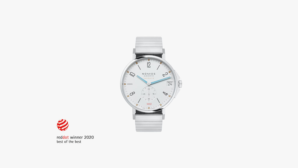 A white watch-dial, bright blue hands, sharp, superluminous hour markers that tell time in the dark, a completely novel bracelet made of 145 parts screwed together by hand, and most importantly just the right proportions: NOMOS Glashütte has won yet another award, this time for its newest model Tangente Sport. And not just any award. The jury of the renowned design prize Red Dot has selected the watch for its highest distinction: Best of the Best.