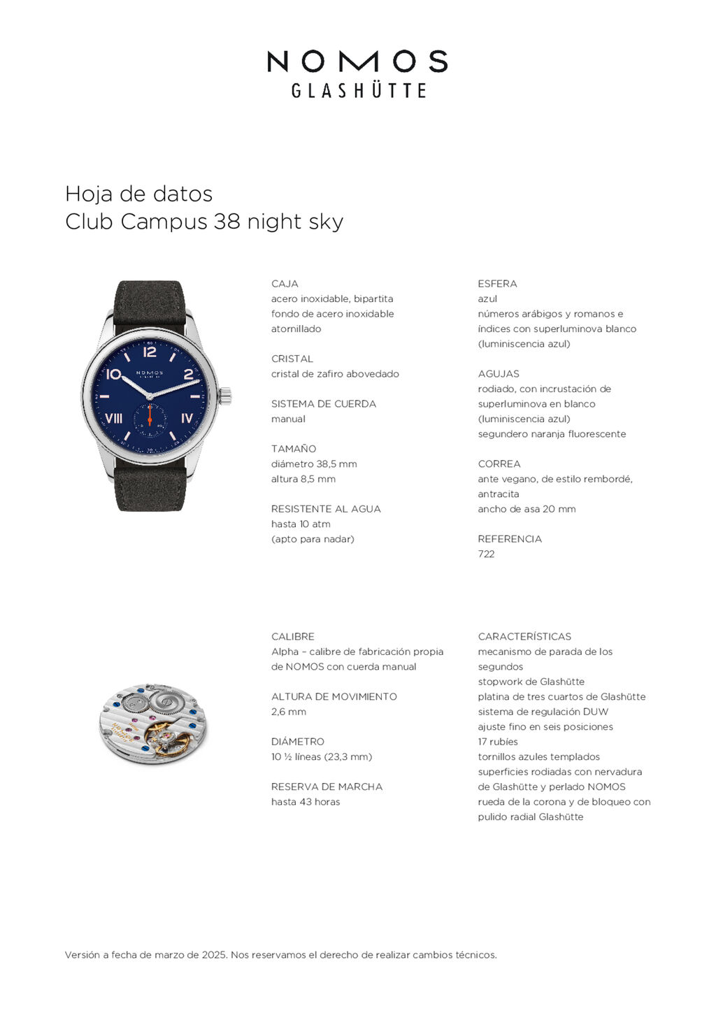 Hoja de datos Club Campus 38 night sky (ref. 722)