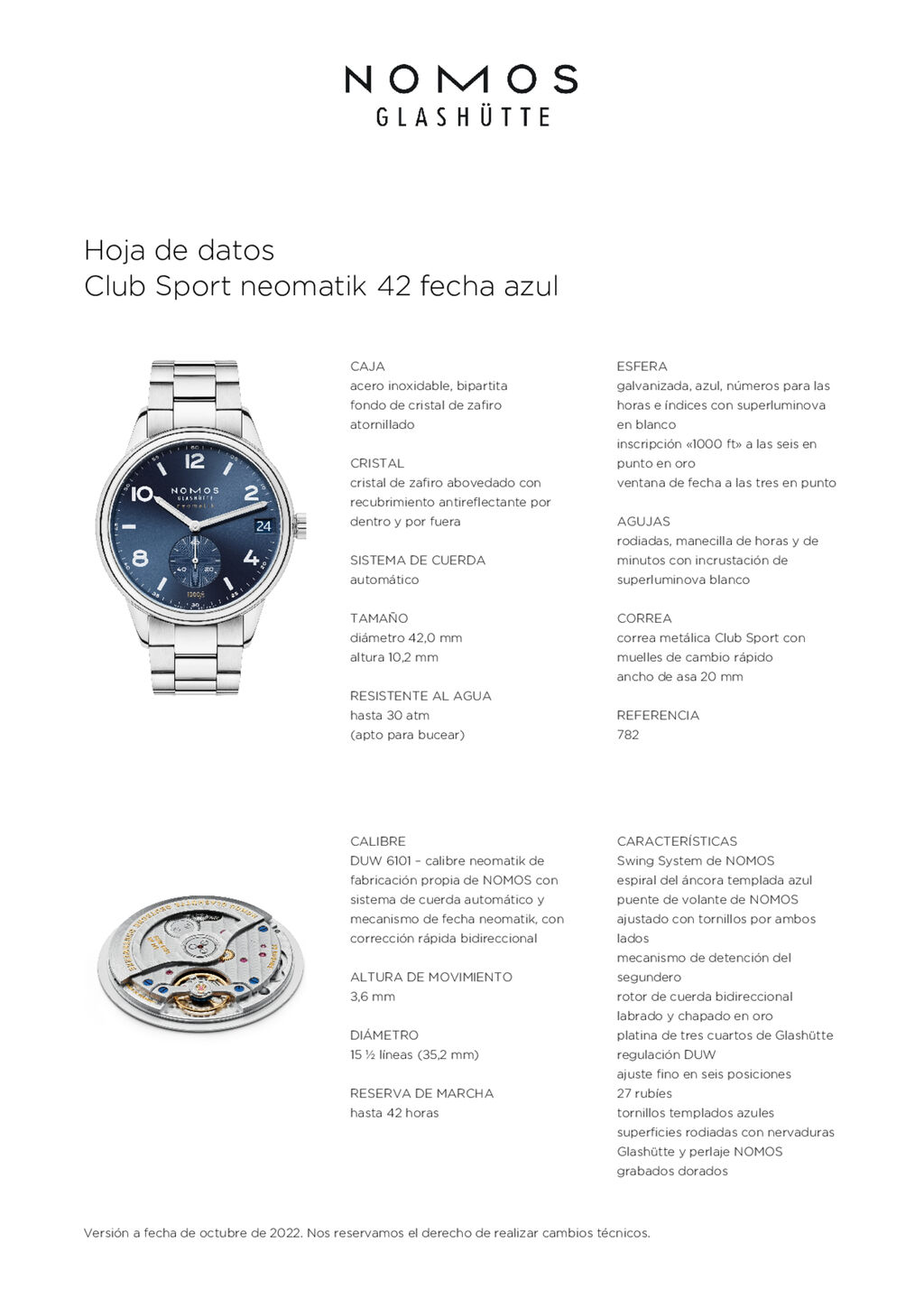 Hoja de datos Club Sport neomatik 42 fecha negro (ref. 782)