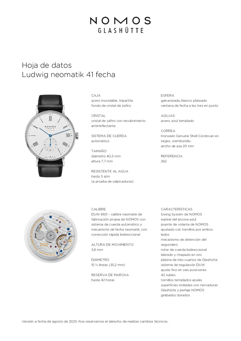Hoja de datos Ludwig neomatik 41 fecha (ref. 262)