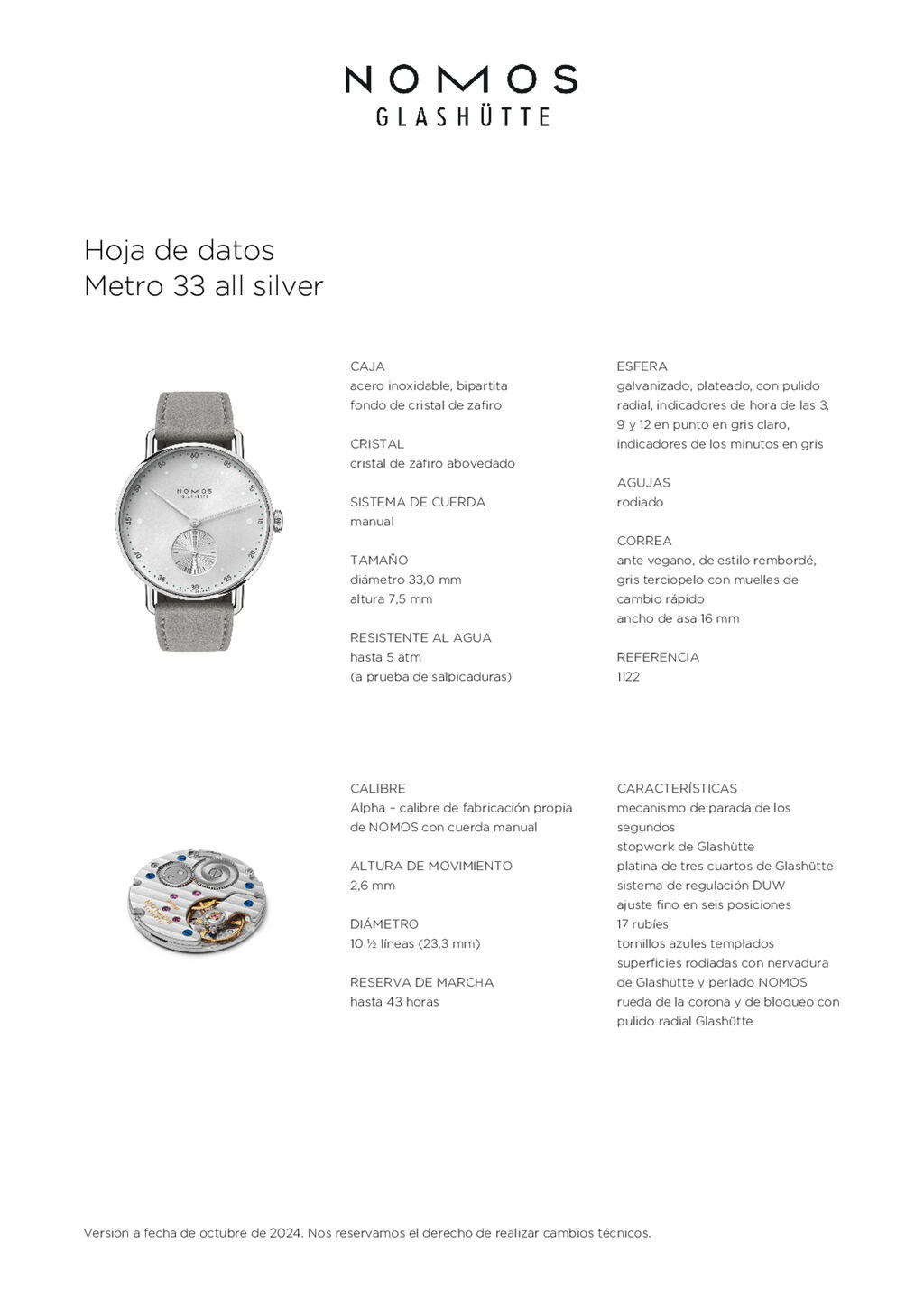 Hoja de datos Metro 33 all silver (ref. 1122)