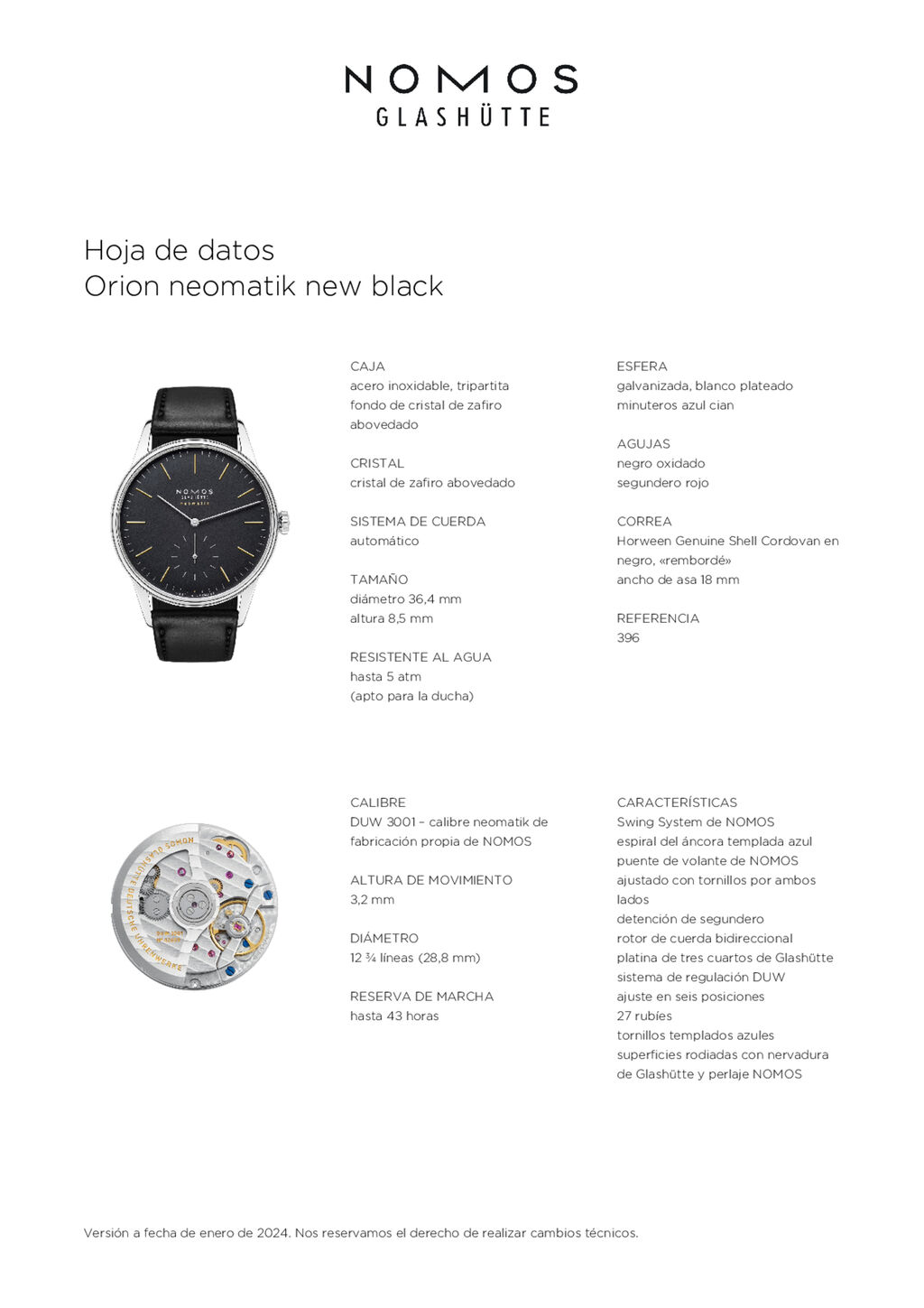 Hoja de datos Orion neomatik new black (ref. 396)