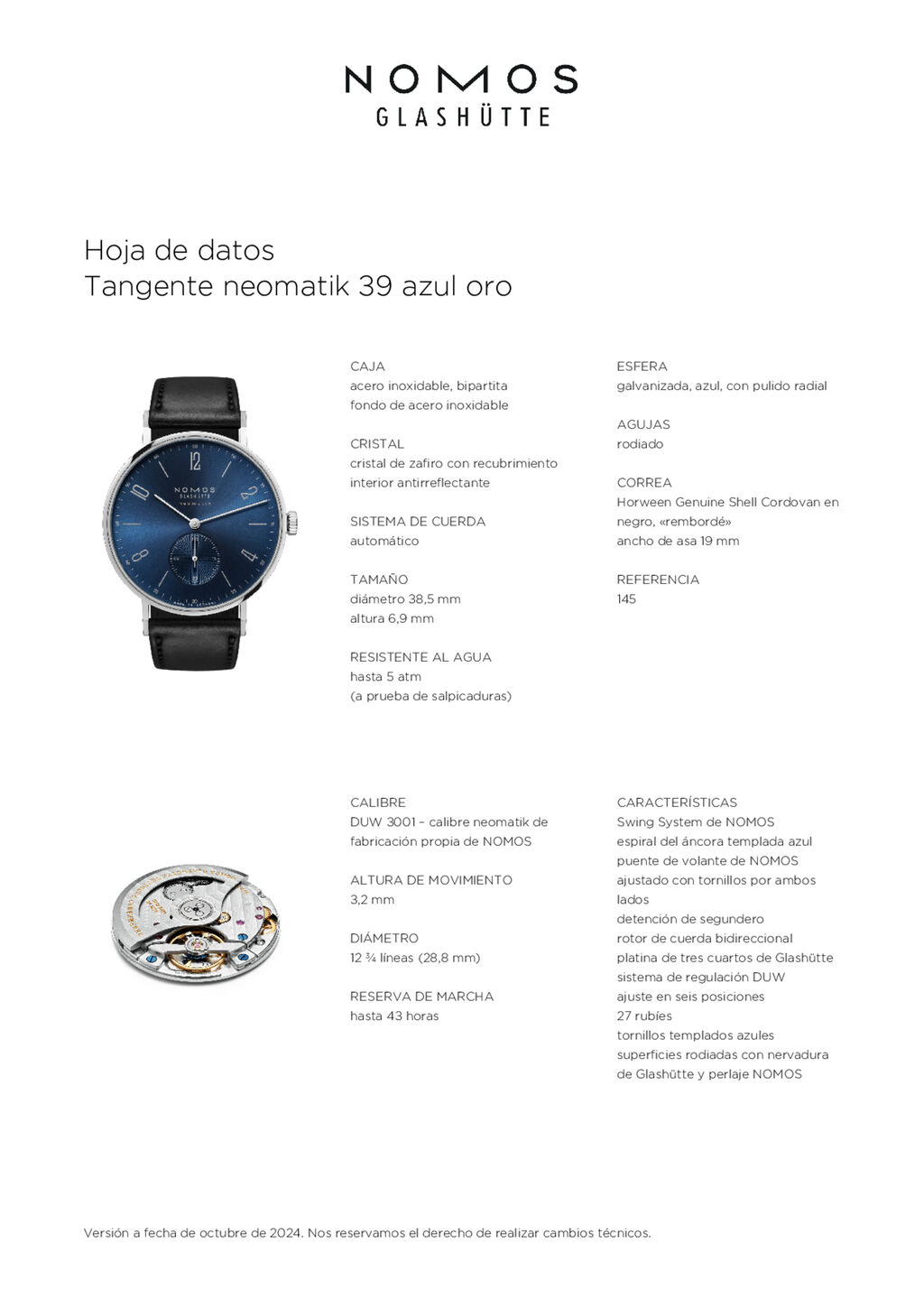 Hoja de datos Tangente neomatik 39 azul oro (ref. 145)