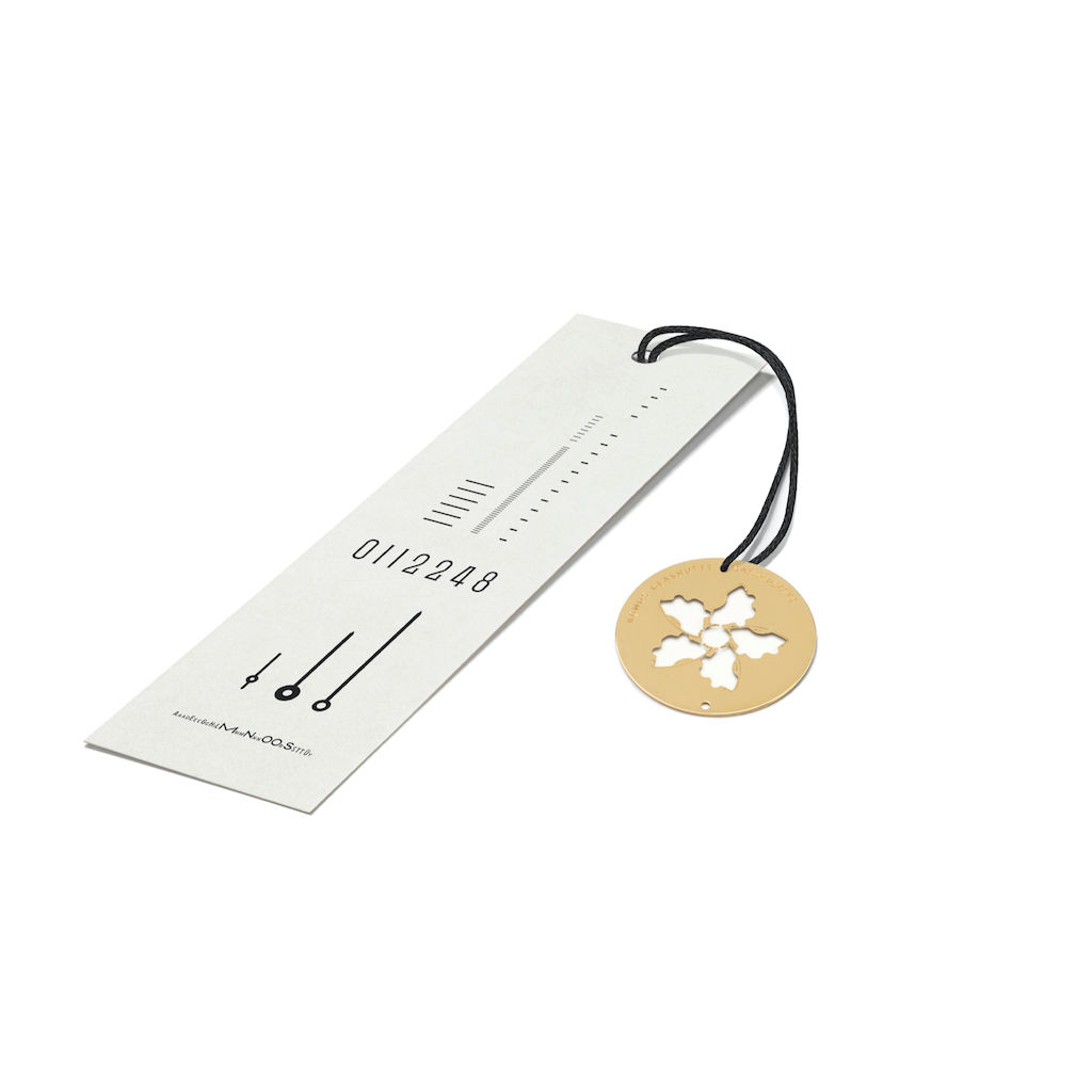 Señaladores NOMOS con rodajas doradas y tiritas de cuero. Las rodajas se seleccionan al azar.
