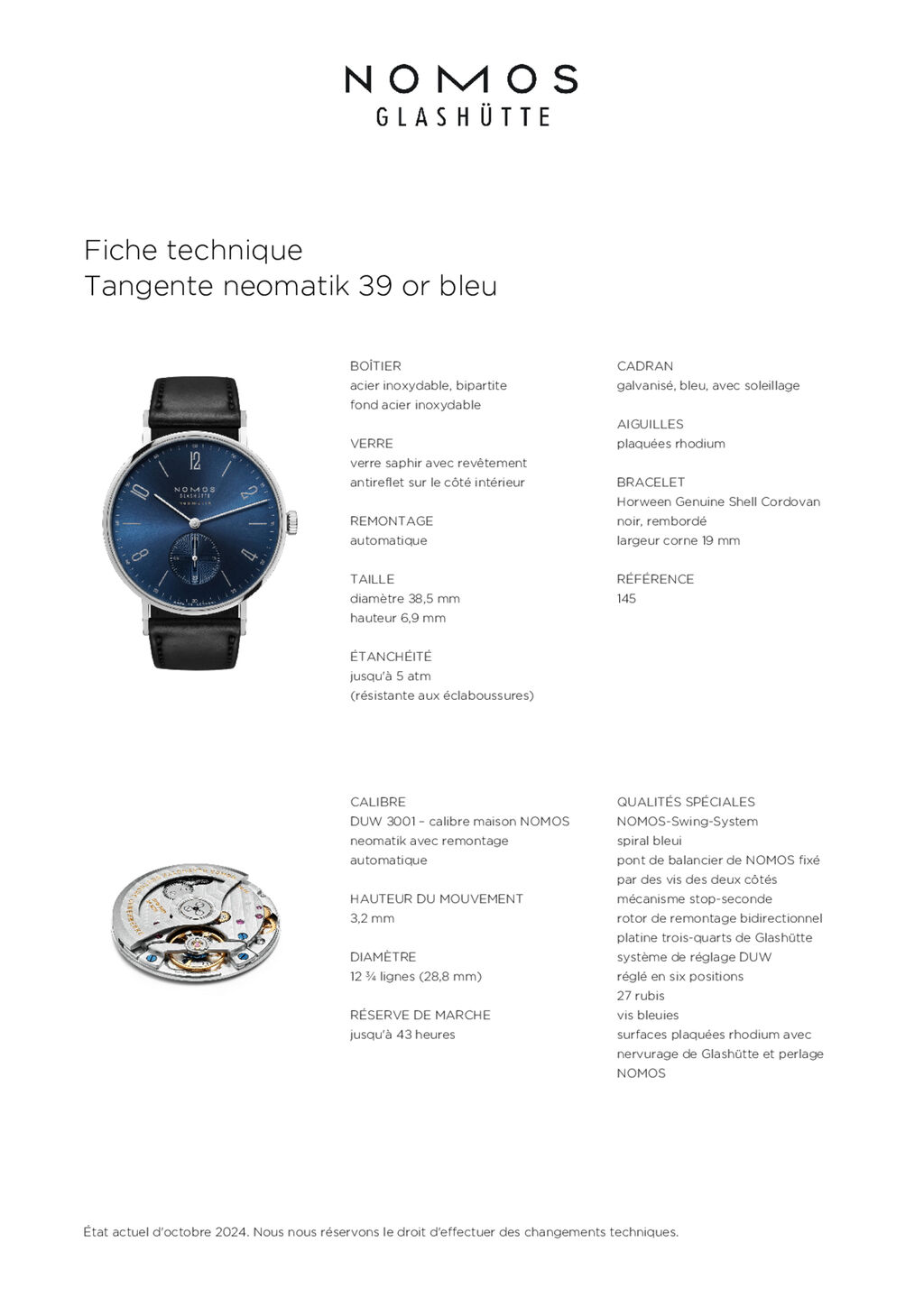 Fiche technique Tangente neomatik 39 or bleu (réf. 145)