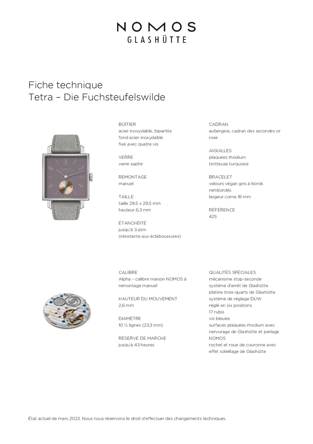 Fiche technique Tetra – Die Fuchsteufelswilde (réf. 425)