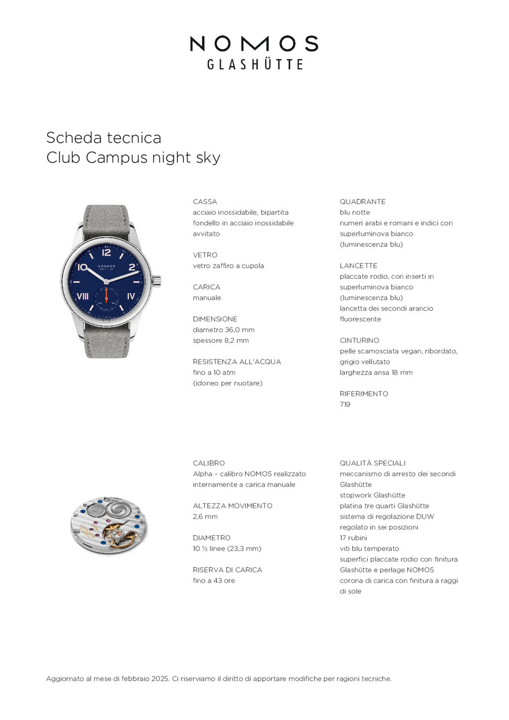 Club Campus night sky 2D lato anteriore (rif. 719)