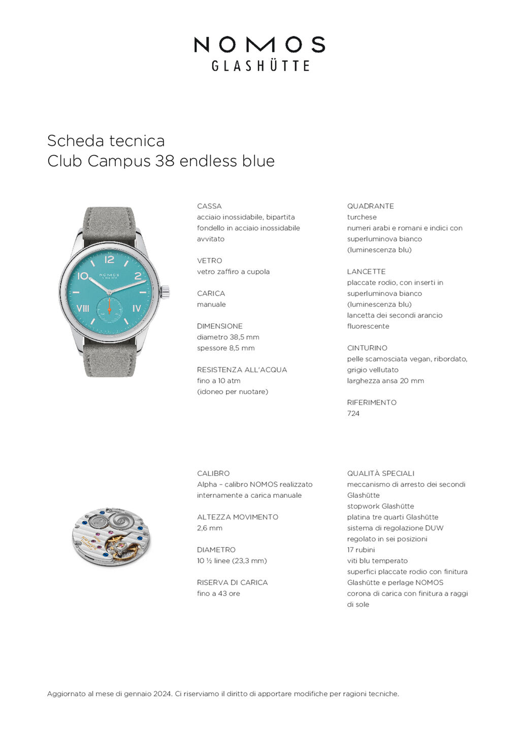 Scheda tecnica Club Campus 38 endless blue (rif. 724)