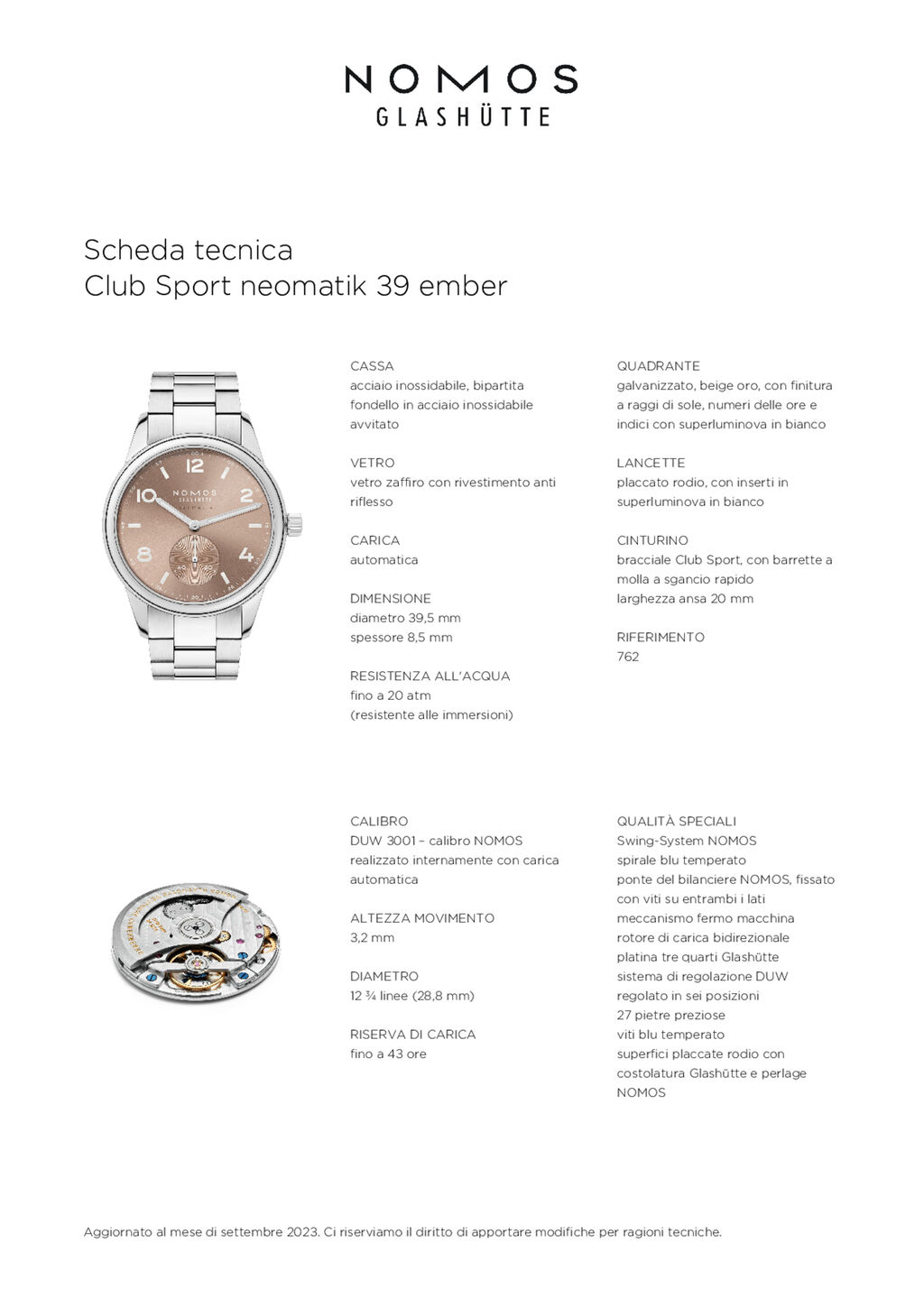 Scheda tecnica Club Sport neomatik 39 ember (rif. 762)