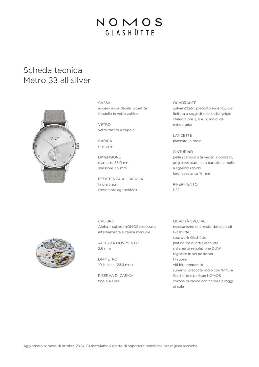 Scheda tecnica Metro 33 all silver (rif. 1122)