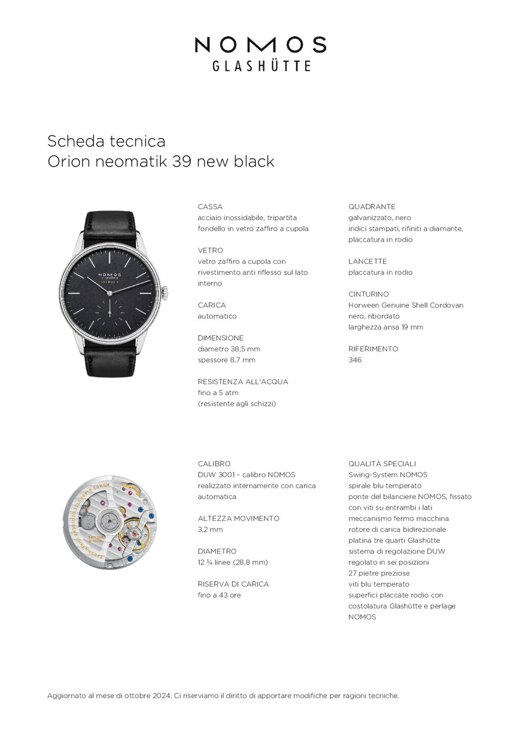 Scheda tecnica Orion neomatik 39 new black (rif. 346)