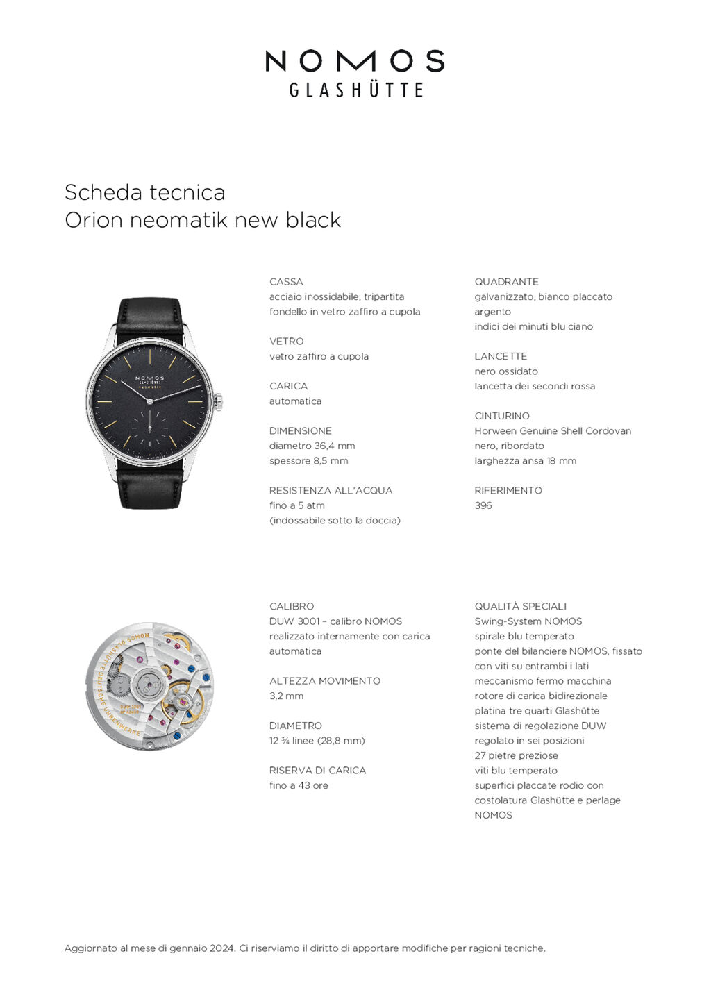 Scheda tecnica Orion neomatik new black (rif. 396)