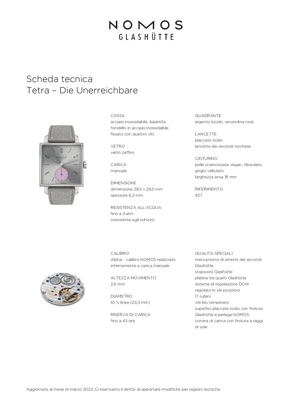 Scheda tecnica Tetra – Die Unerreichbare (rif. 427)