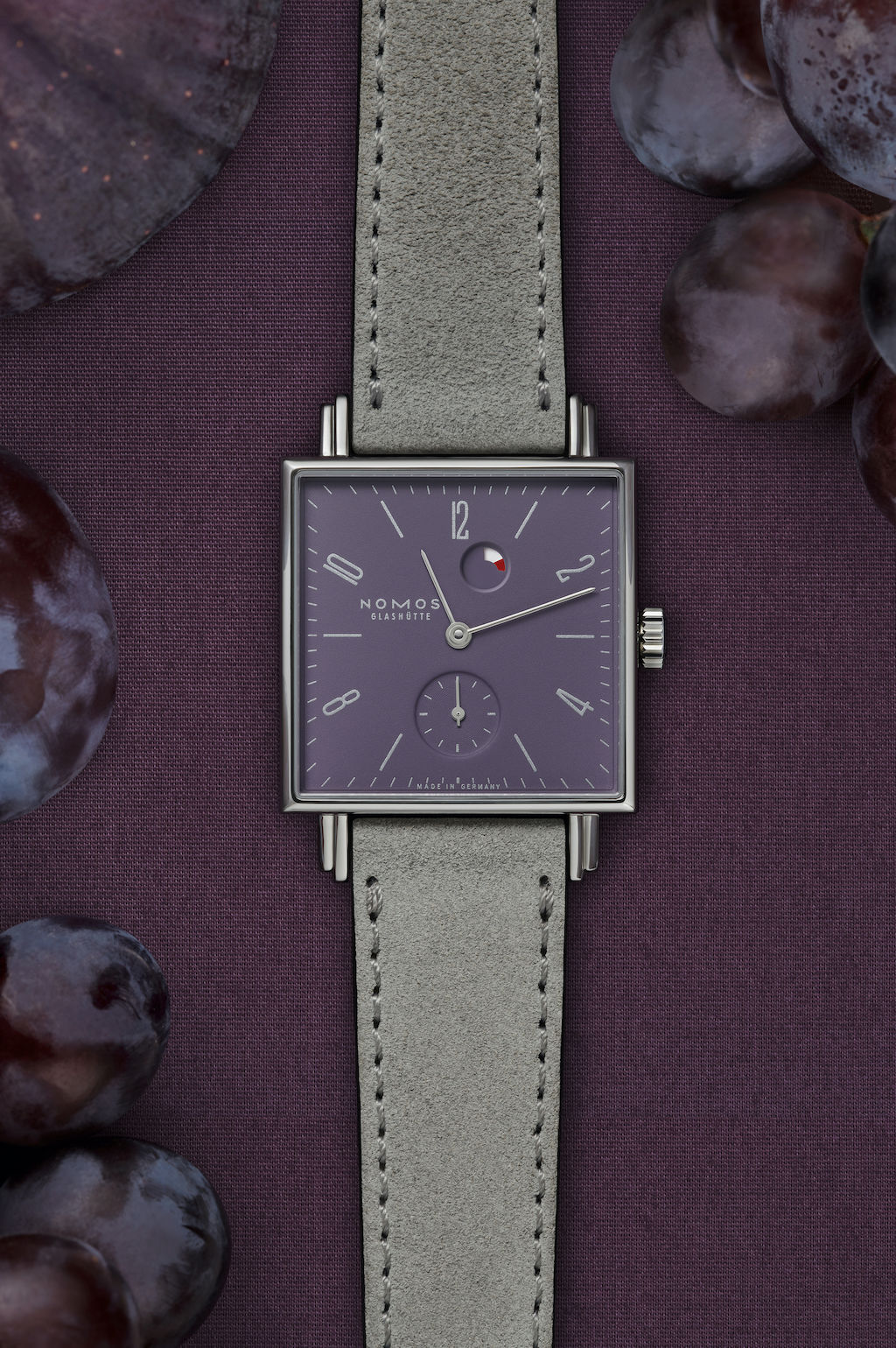 Finally, ripe for the wrist and new this fall: Tetra plum. In honor of the harvest season, the dial of this version of the angular NOMOS classic comes in a rich shade of purple—and you can find more about this new release here.