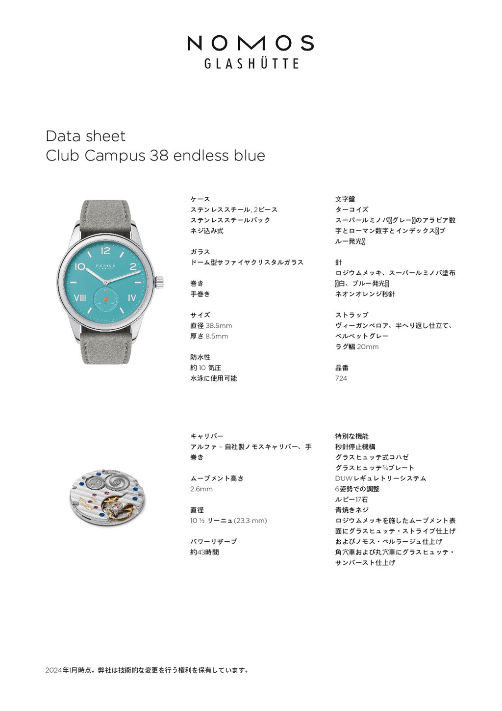 Fact sheet Club Campus 38 endless blue (ref. 724)