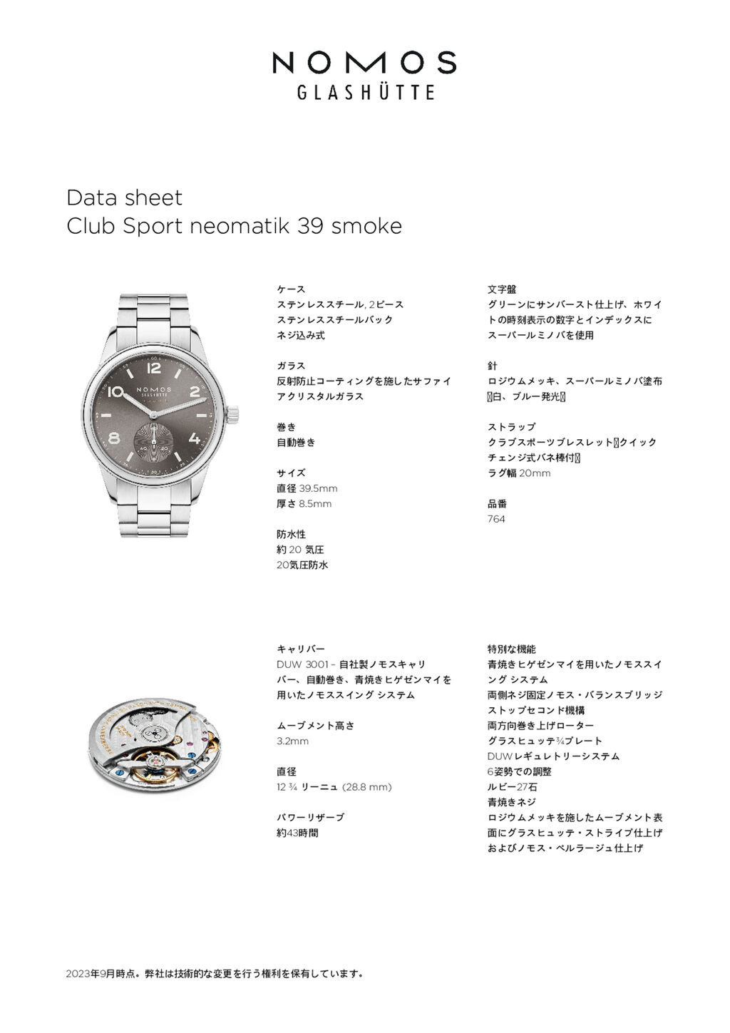 Fact sheet Club Sport neomatik 39 smoke (ref. 764)