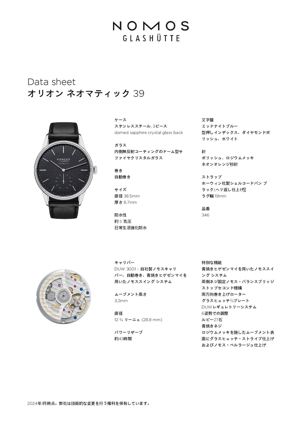 Fact sheet オリオン ネオマティック 39 (ref. 346)