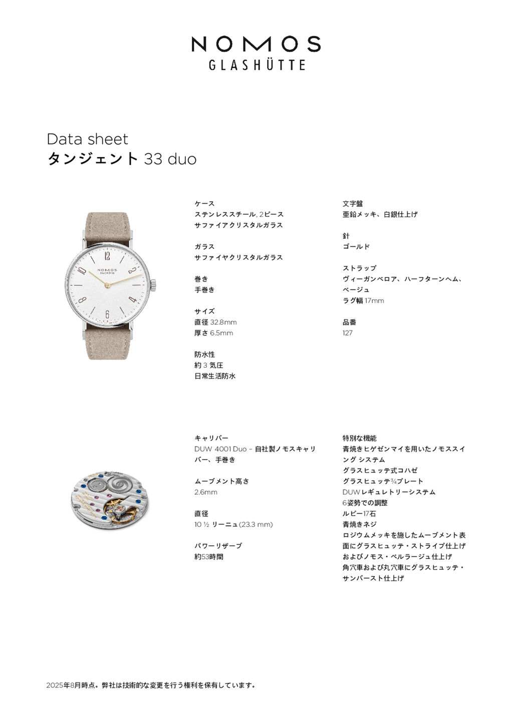 Fact sheet タンジェント 33 Duo (ref. 127)