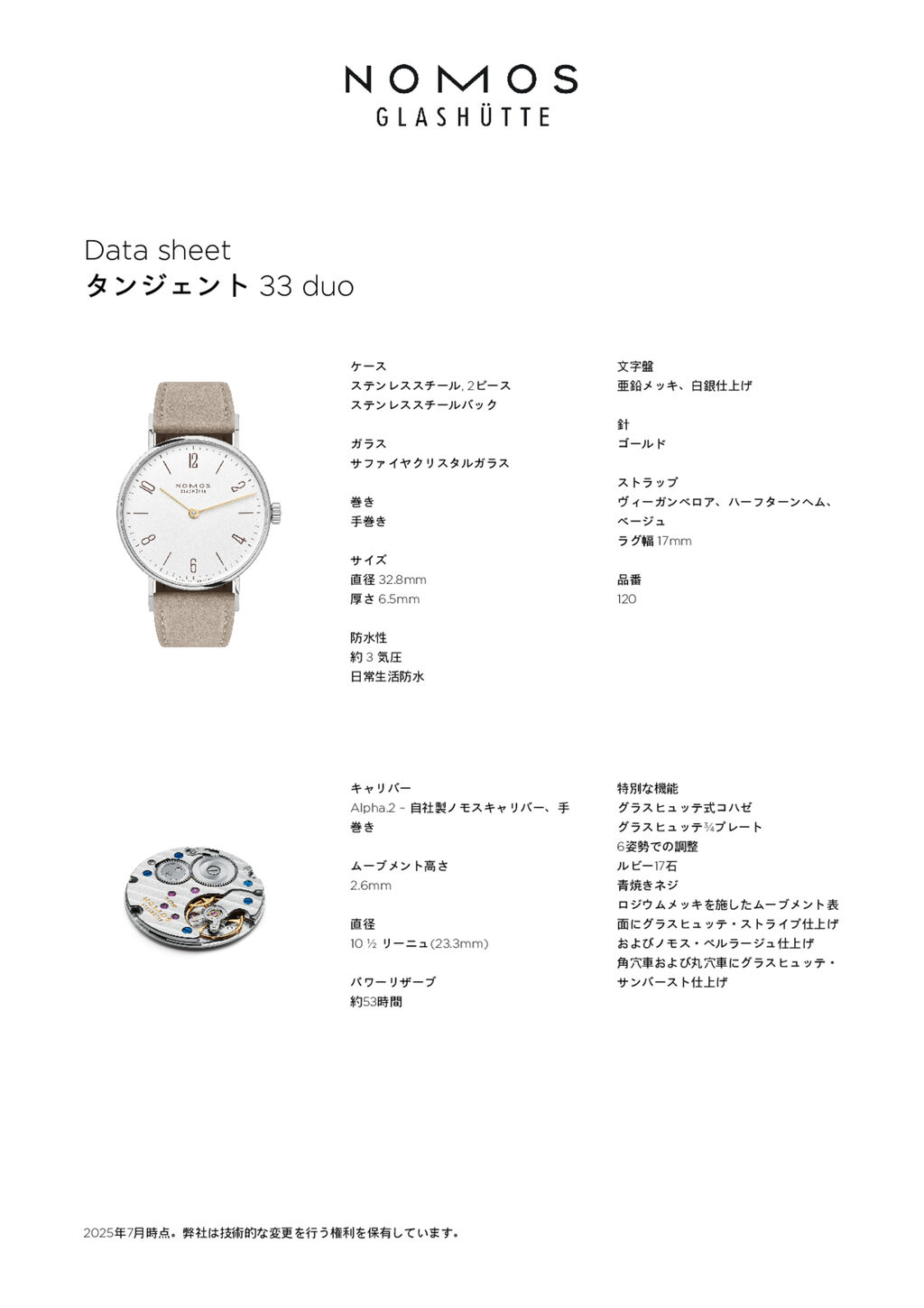 Fact sheet タンジェント 33 Duo (ref. 120)