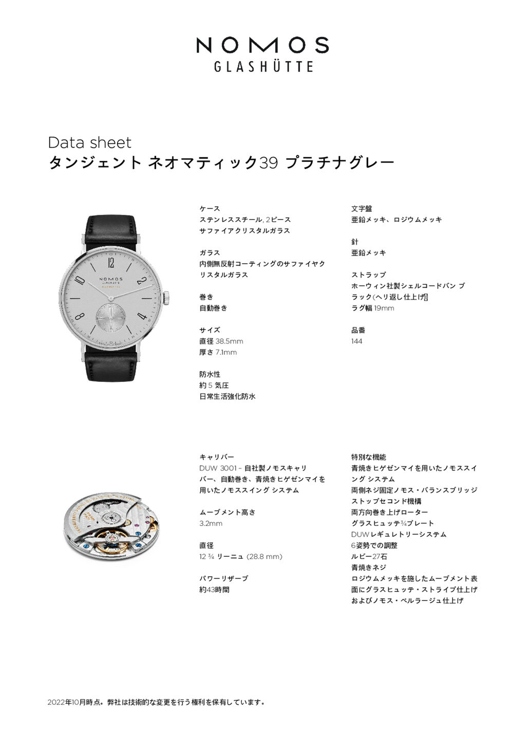 Fact sheet タンジェント ネオマティック 39 (ref. 144)