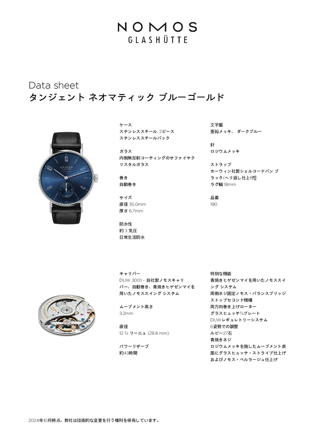 Fact sheet タンジェント ネオマティック ブルーゴールド (ref. 190)