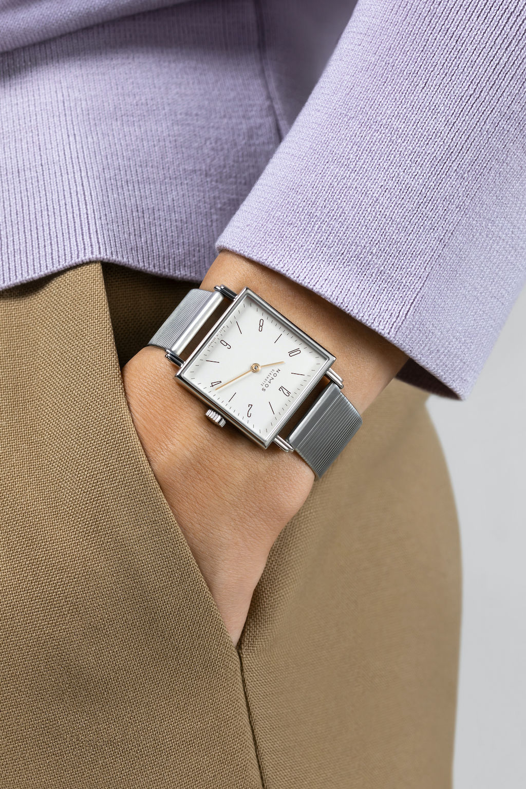 針は円を描いて動いていますが、この時計はスクエアです。いくつかの手首にはこのスタイルを好むものもあるでしょう。テトラはグラスヒュッテから贈られるすばらしい時計です。わかりやすく、はっきりとしていて、それは個性的な考え方であり、あなたへエレガントに寄り添うことをお約束いたします。