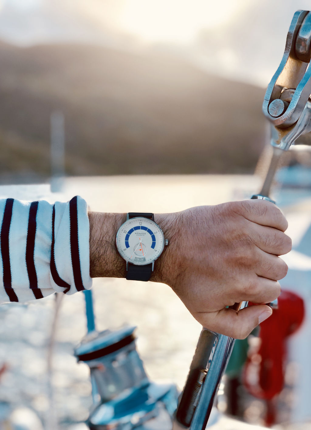 Strapping stuff! The NOMOS textile strap—comfortable even during heatwaves and while making a splash.