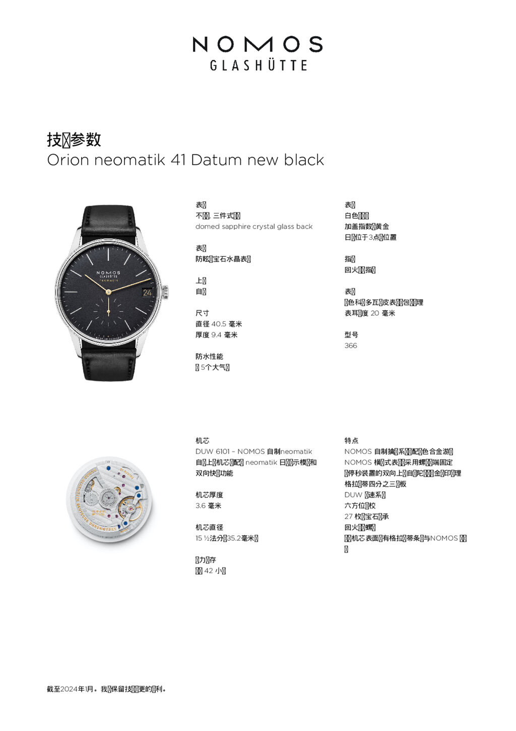 Fact sheet Orion neomatik 41 Datum new black (ref. 366)