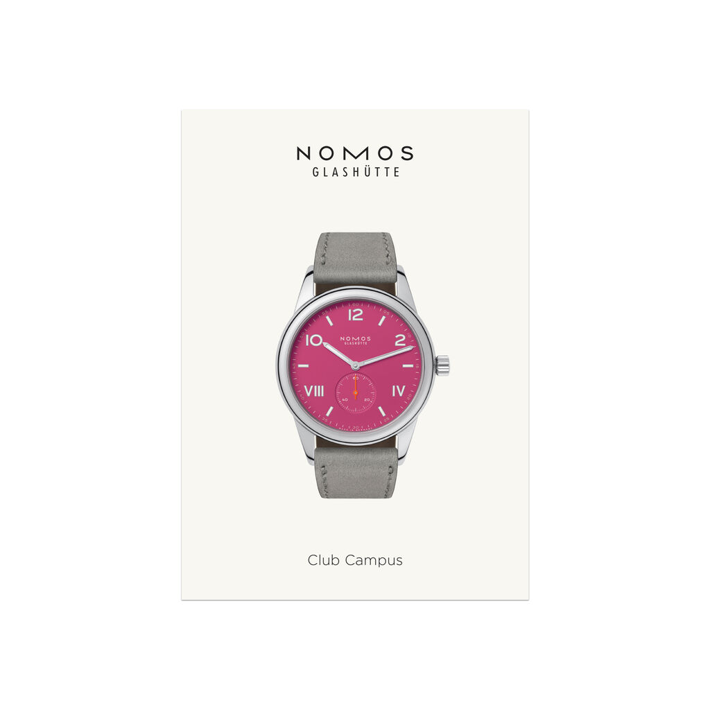 表盘光彩夺目、线条利落,Club Campus deep pink跃然登上NOMOS画报,鼓励佩戴者大胆创新,忠于自我。这款大受欢迎的腕表于2022年3月推出,来自非常成功的Club Campus系列。