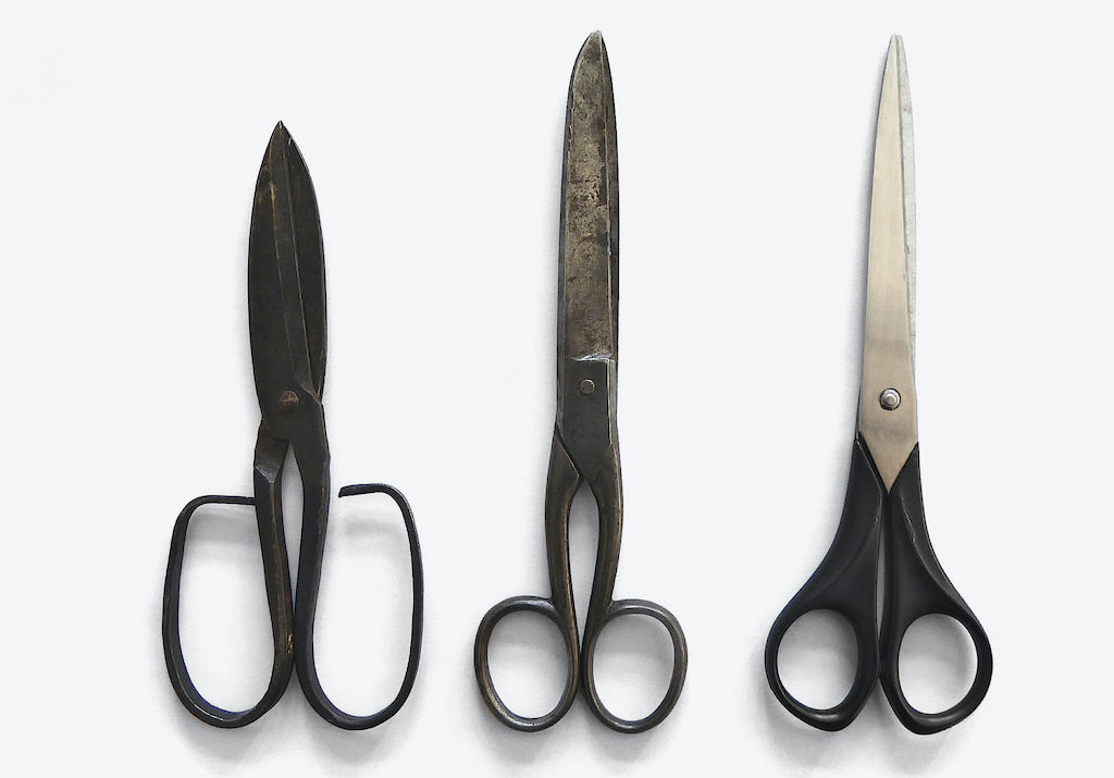 Scissors forged by hand, from the household effects of my grandparents, probably made in the 19th century, unmatched in their ability to cut thick cardboard boxes etc., still in regular use.
