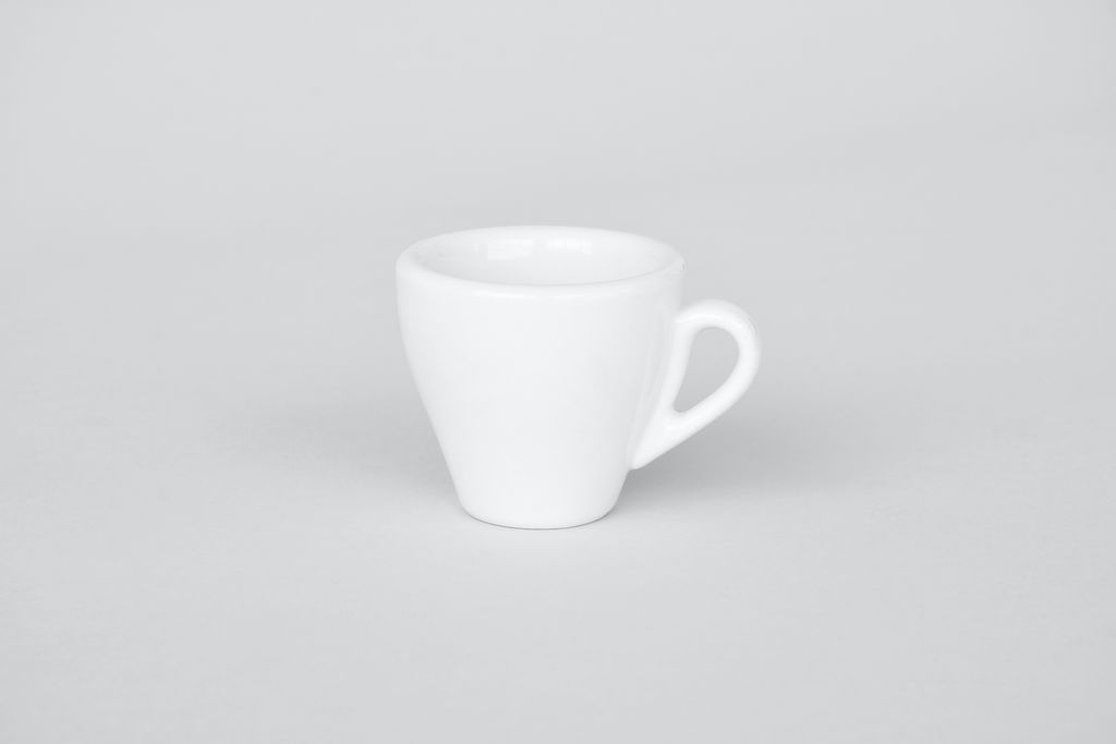The epitome of an espresso cup and a kind of detox from art: thick, white porcelain, perfect for building up the froth