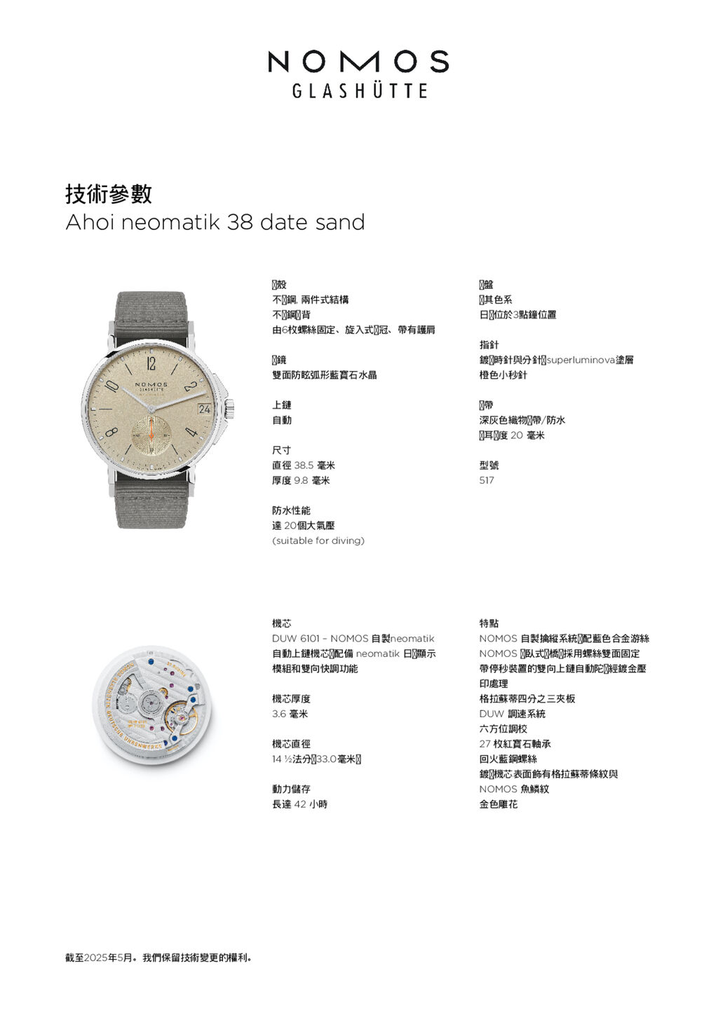Ahoi neomatik 38 date sand detail (ref. 527, 517)