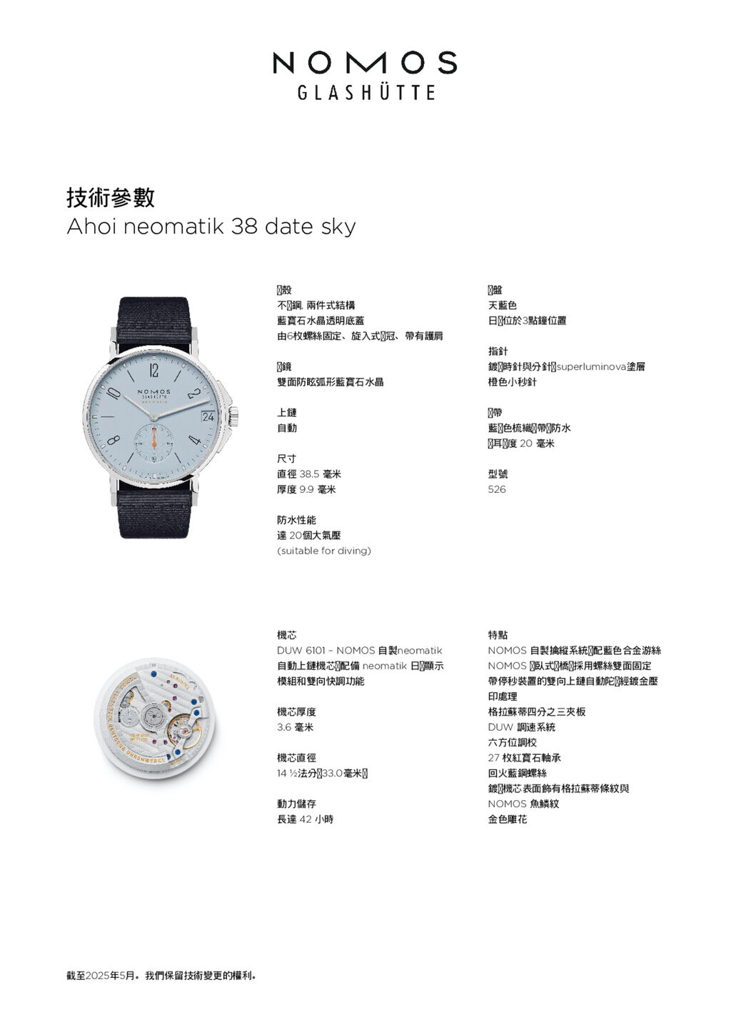 Fact sheet Ahoi neomatik 38 date sky (ref. 526)