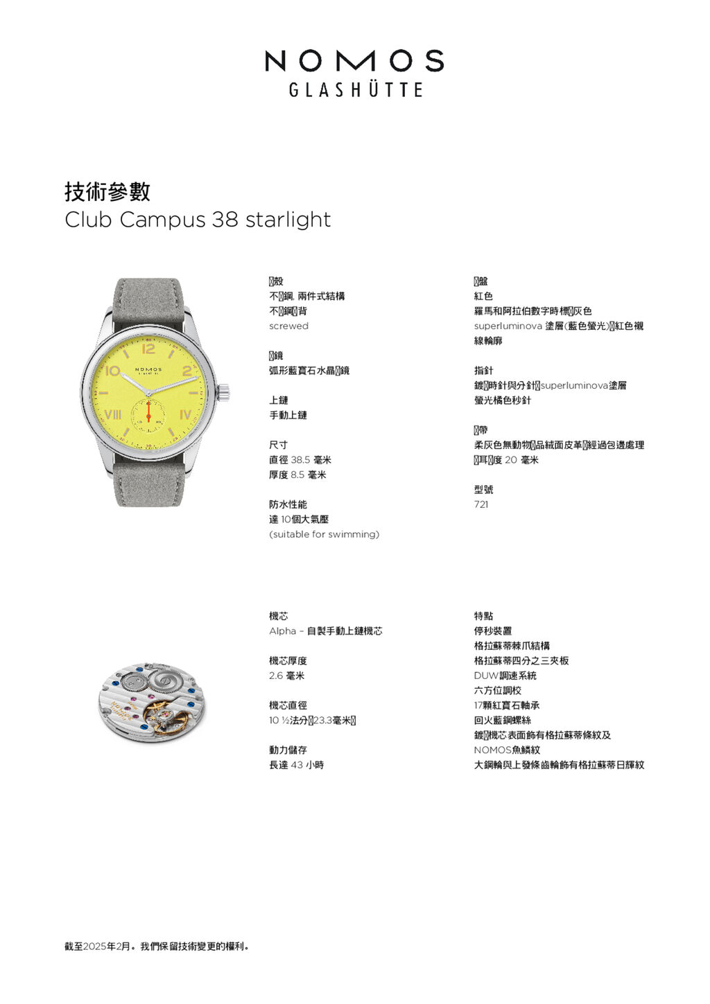 使用條件:這些可供下載的圖片僅可用於編輯內容,或者在得到NOMOS零售商授權後進行使用,並應附上“版權所有:NOMOS Glashütte”的字樣。