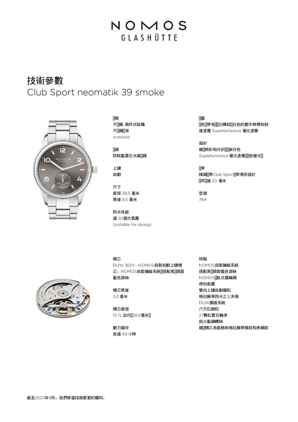 Fact sheet Club Sport neomatik 39 smoke (ref. 764)