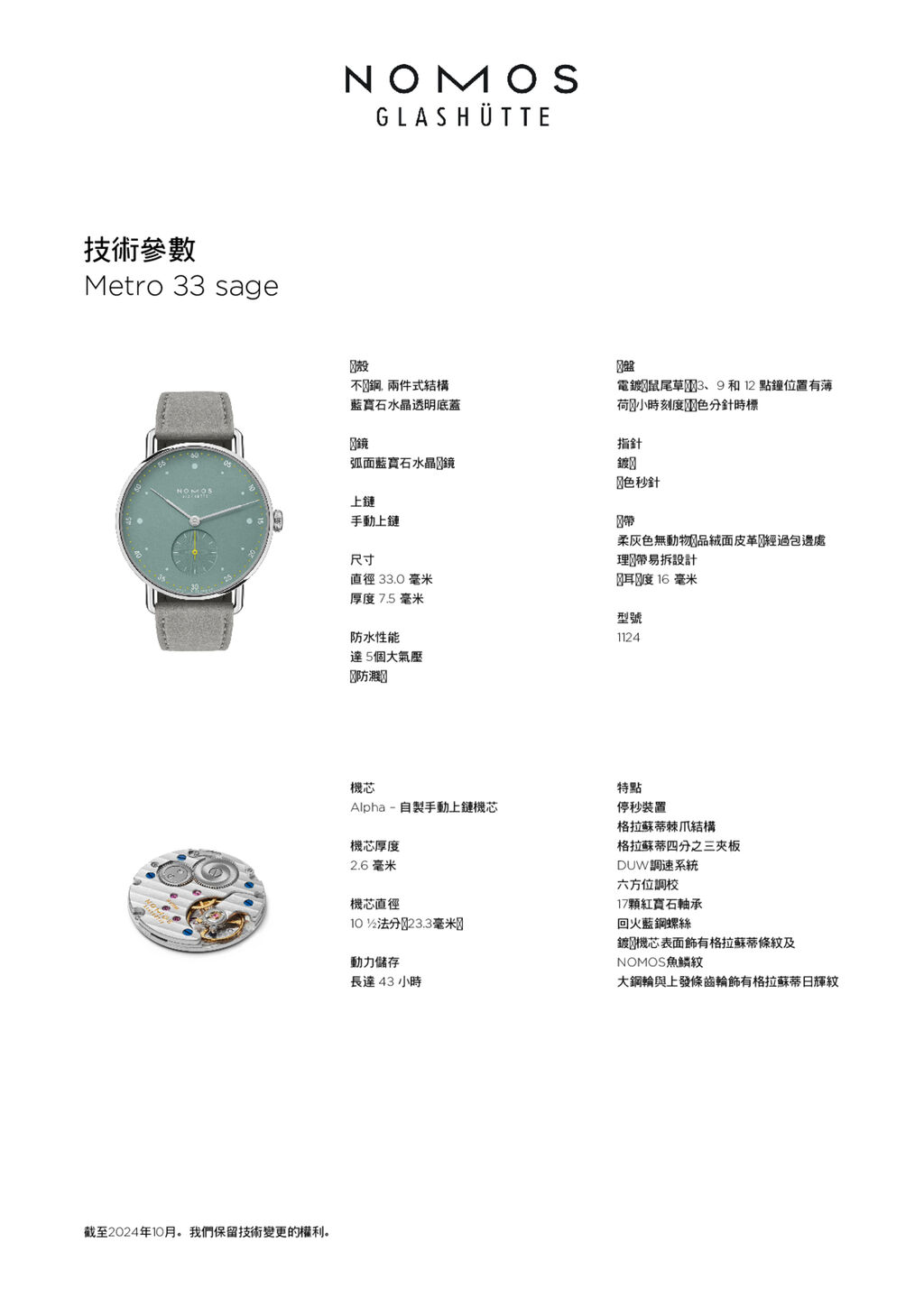 使用條件:這些可供下載的圖片僅可用於編輯內容,或者在得到NOMOS零售商授權後進行使用,並應附上“版權所有:NOMOS Glashütte”的字樣。