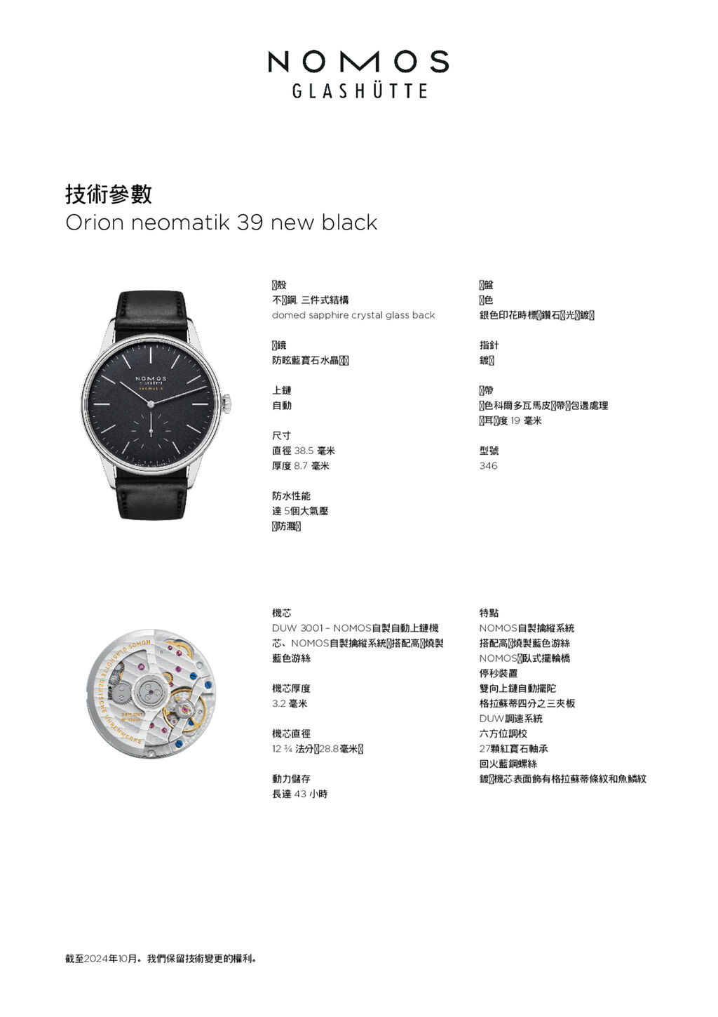 Fact sheet Orion neomatik 39 new black (ref. 346)