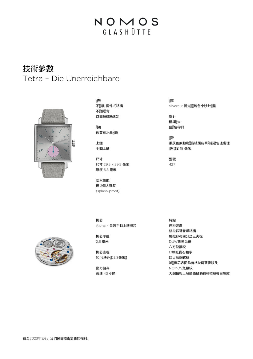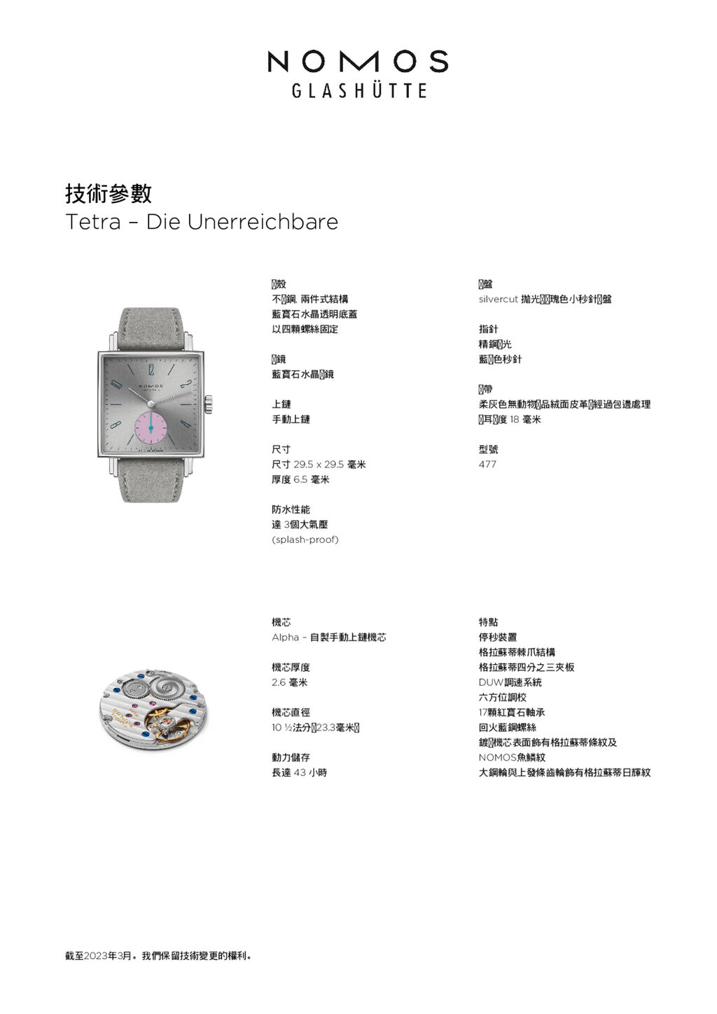 使用條件:這些可供下載的圖片僅可用於編輯內容,或者在得到NOMOS零售商授權後進行使用,並應附上“版權所有:NOMOS Glashütte”的字樣。